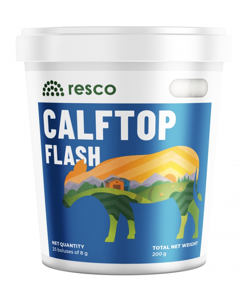 Bolusul cu eliberare rapida de vitamine si minerale pentru stimularea imunitatii la vitei, Calftop Flash, are grija de viteii proaspat fatati si previne problemele viteilor fatati recent, pentru a le oferi un bun inceput. Bolusul trebuie utilizat doar pentru viteii fatati recent.