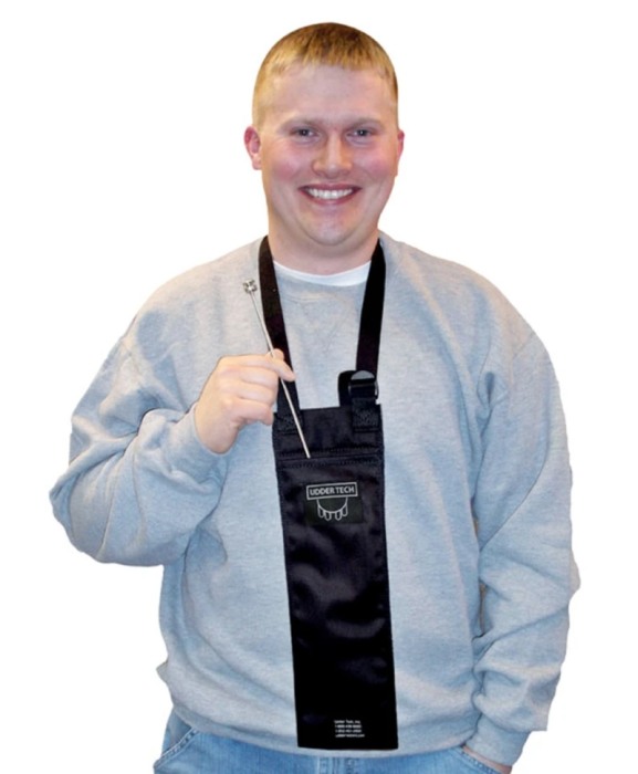 Continut pachet: 1 x suport paiete material seminal Udder Tech, cu prindere dupa gat, negru