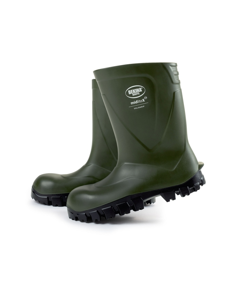 Modelul MidliteX SolidGrip este rezistent la uleiuri, grasimi, gunoi de grajd si diverse produse de curatare. Spre deosebire de incaltamintea greoaie din PVC sau din cauciuc, datorita materialului NEOTANE, cizmele Bekina sunt durabile, foarte usoare si confortabile, ramanand moi chiar si la temperaturi scazute. Inaltimea cizmei poate fi ajustata pentru a satisface cerintele individuale.