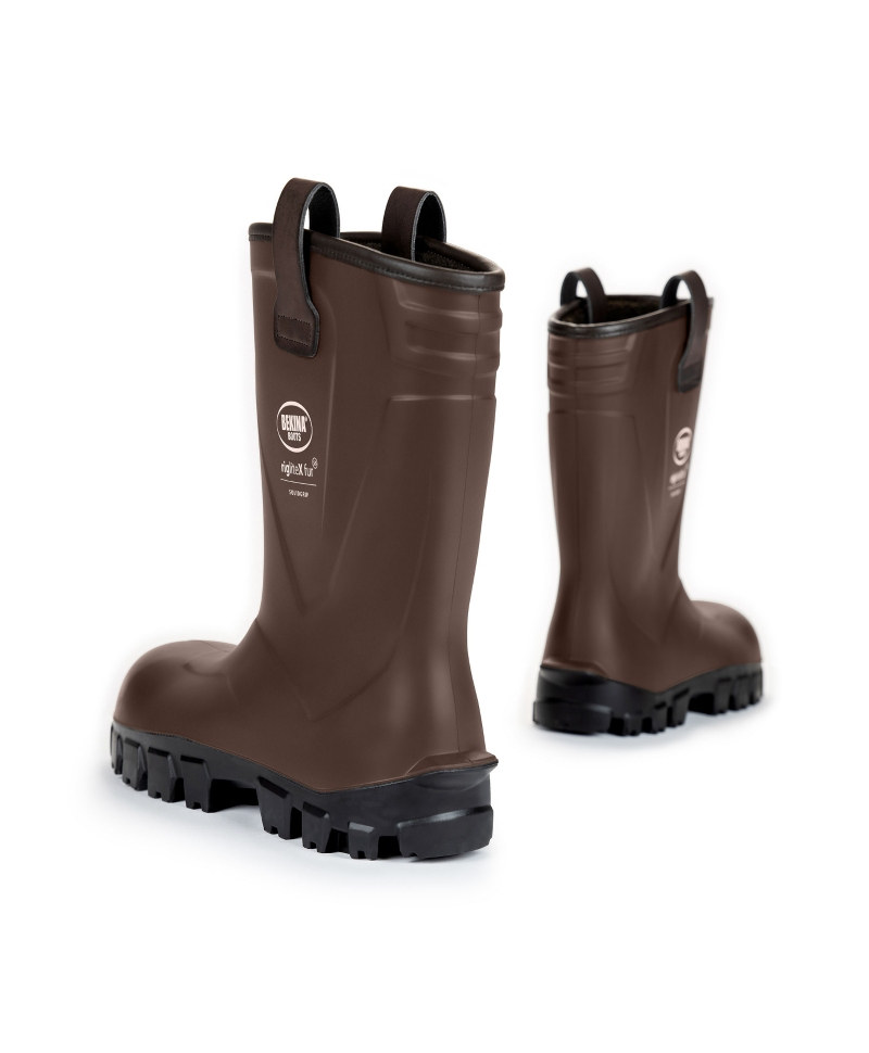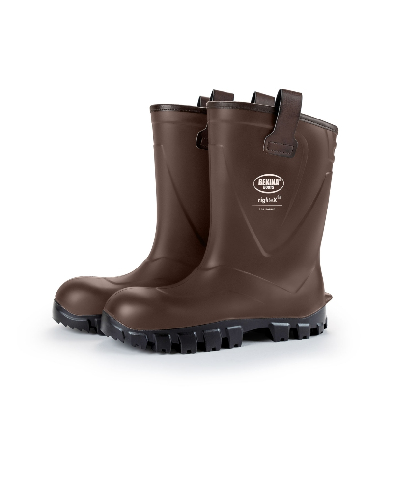 Continut pachet: 1 x pereche de cizme protectie Bekina RigliteX SolidGrip, S5, imblanite, maro/negru