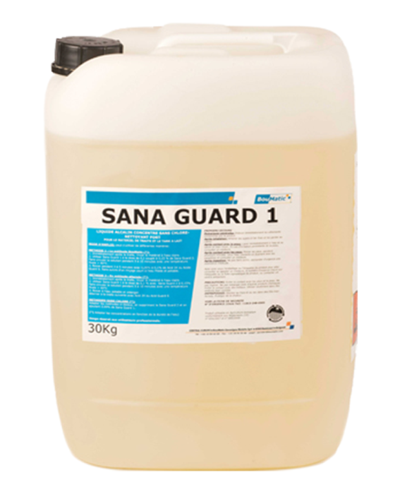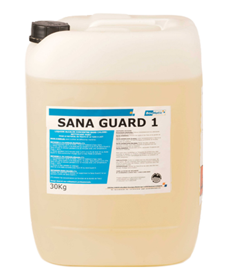 Detergent concentrat alcalin lichid fara clor BouMatic Sana Guard 1, pentru instalatii de muls si tancuri de racire