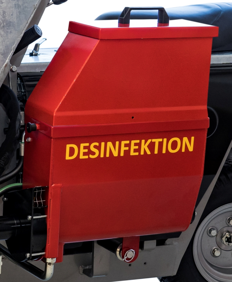 Este disponibila optiunea de dotare cu distribuitor de praf dezinfectant. Utilajul are un buncar cu auto-incarcare. Utilizarea Frontload usureaza procesul de curatare si intretinere in ferma. Frontload reduce numarul de celule somatice, imbunatateste igiena si previne raspandirea de boli. In acelasi timp, Frontload imbunatateste starea de sanatate a vacilor, lucru care rezulta intr-o productie de lapte de calitate.