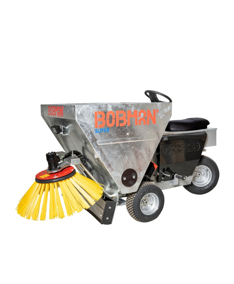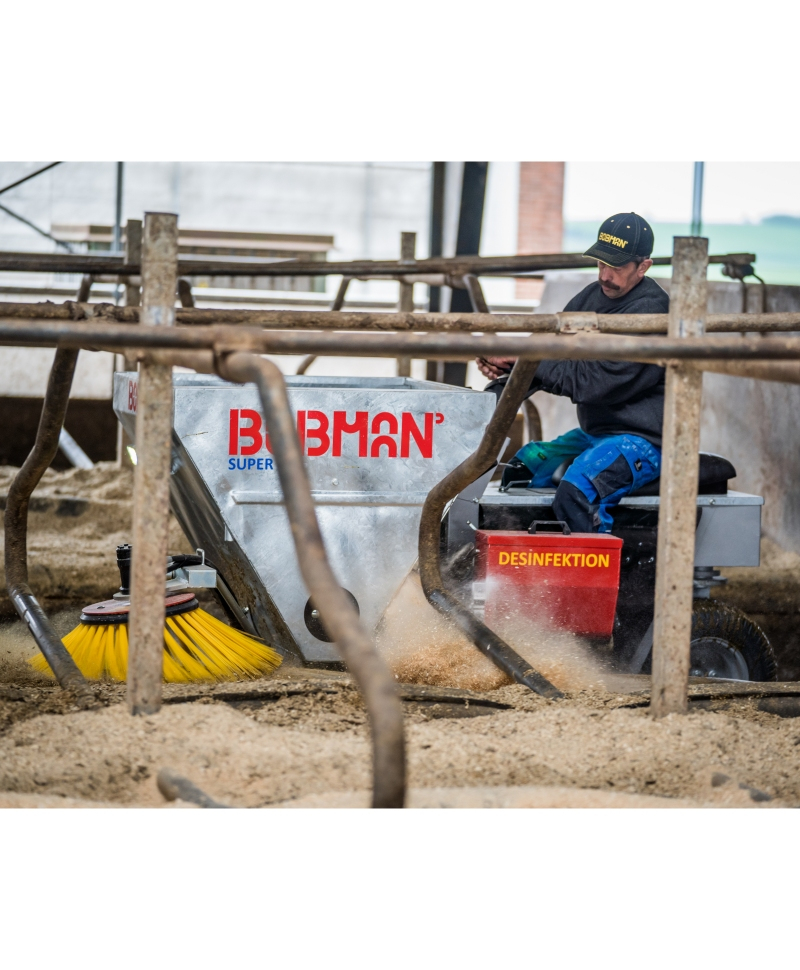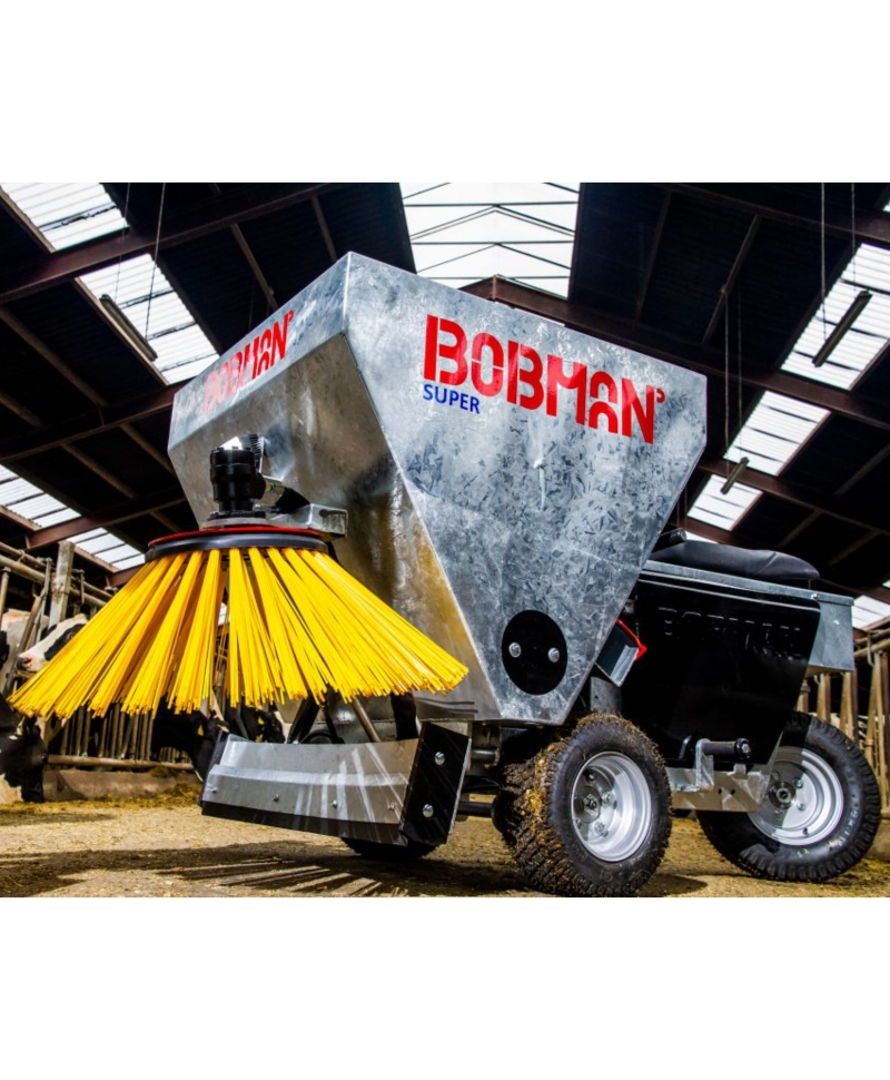 Este disponibila optiunea de dotare cu distribuitor de praf dezinfectant. Masina este compacta si usor manevrabila, iar incarcarea se face manual. Buncarul este fix. Rotile acestui model sunt mai mari decat ale predecesorilor sai. Aceasta caracteristica ofera o garda la sol mai mare si o capacitate avansata de a depasi marginile si suprafetele denivelate din grajd. Folosirea echipamentului Bobman Super ajuta la reducerea numarului de celule somatice, imbunatateste igiena din grajd si previne raspandirea bolilor. Sanatatea vacilor din grajd este imbunatatita, astfel rezultand intr-o calitate mai buna a laptelui.