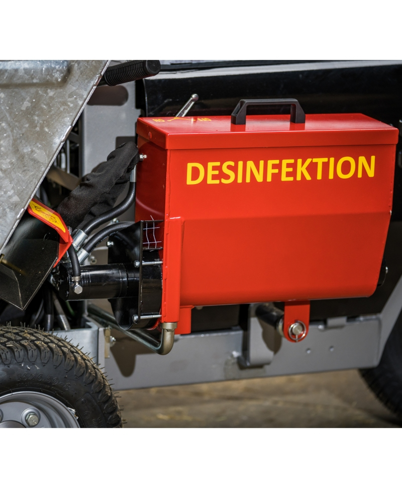 Utilajul Bobman Super curata, matura, imprastie asternutul si dezinfecteaza la o singura trecere, fiind recomandat pentru fermele cu pana la aproximativ 150 de cusete.