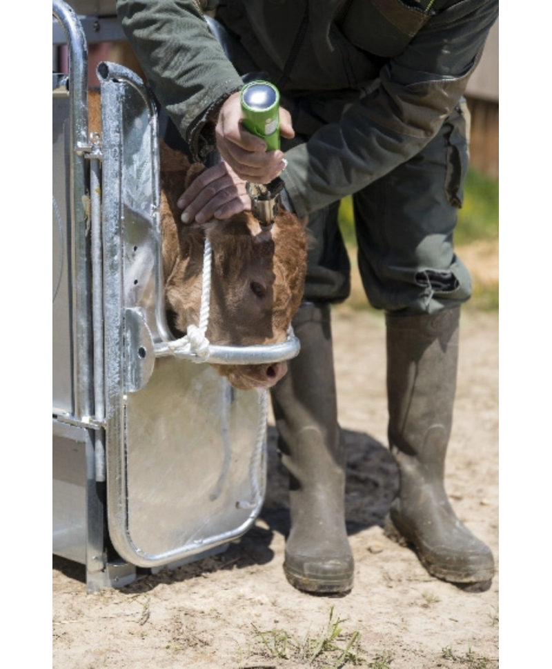 Ecornatorul portabil cu gaz Alios de la Express Farming ecorneaza viteii in varsta de pana la 4 saptamani simplu si eficient, in doar 3 secunde/mugur, datorita puterii sale de 350 W.