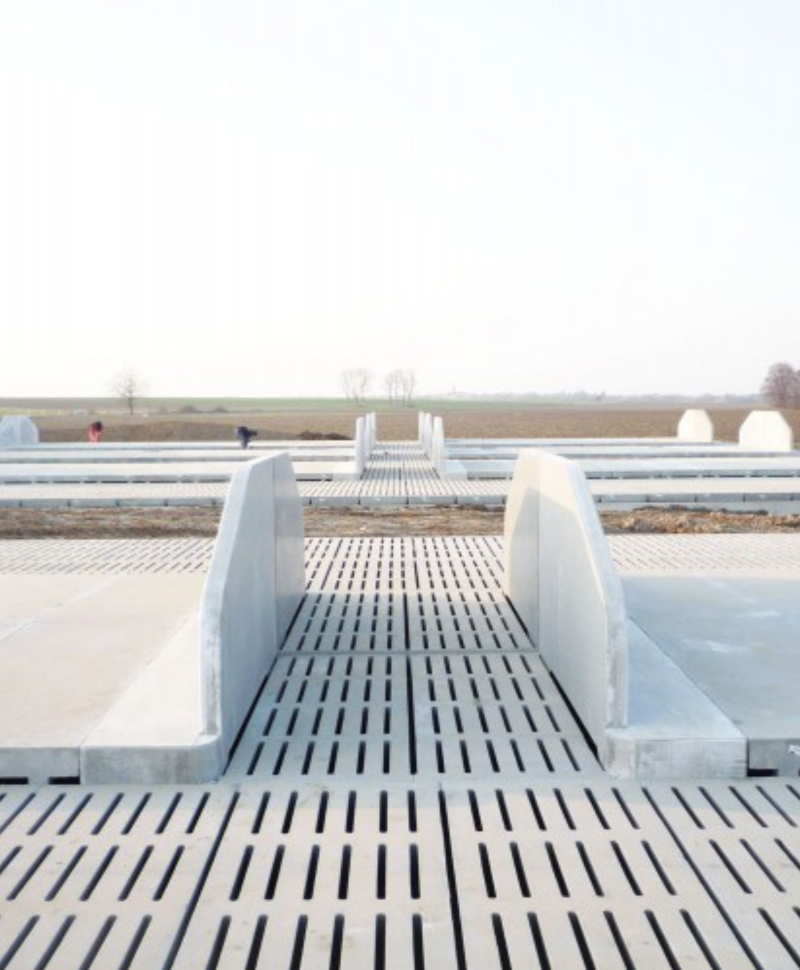 Perete din beton autocompactant, turnat dintr-o bucata, care contine o jumatate de cuseta pentru a putea crea aleile de trafic dintre sectiunile de cusete.