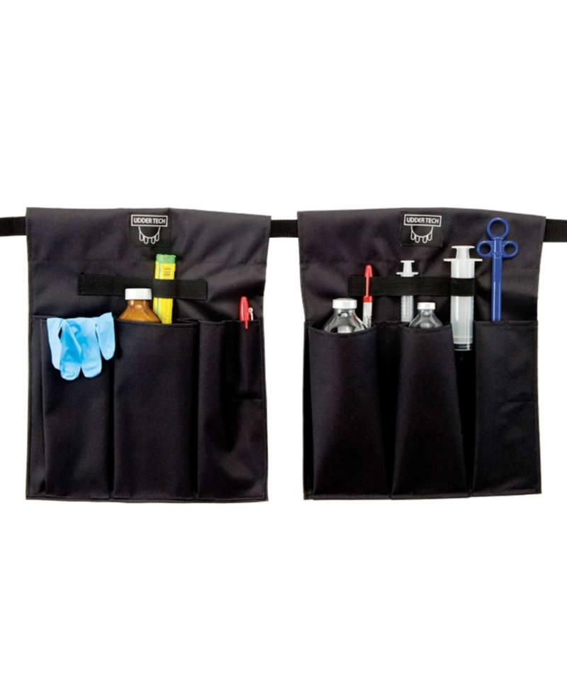 Caracteristici specifice: Logo Udder Tech, Se poate atasa la centura, 2 buzunare mici, 2 buzunare mai mici pentru termometre sau fiole