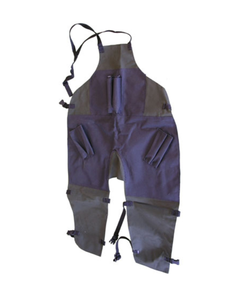 Caracteristici specifice: Separat in mijloc pentru mai mult spatiu pe fiecare picior, Asigura flexibilitate, 4 suporti pentru renete, Buzunare la piept, Curele pentru fixarea pe picioare, Confortabil