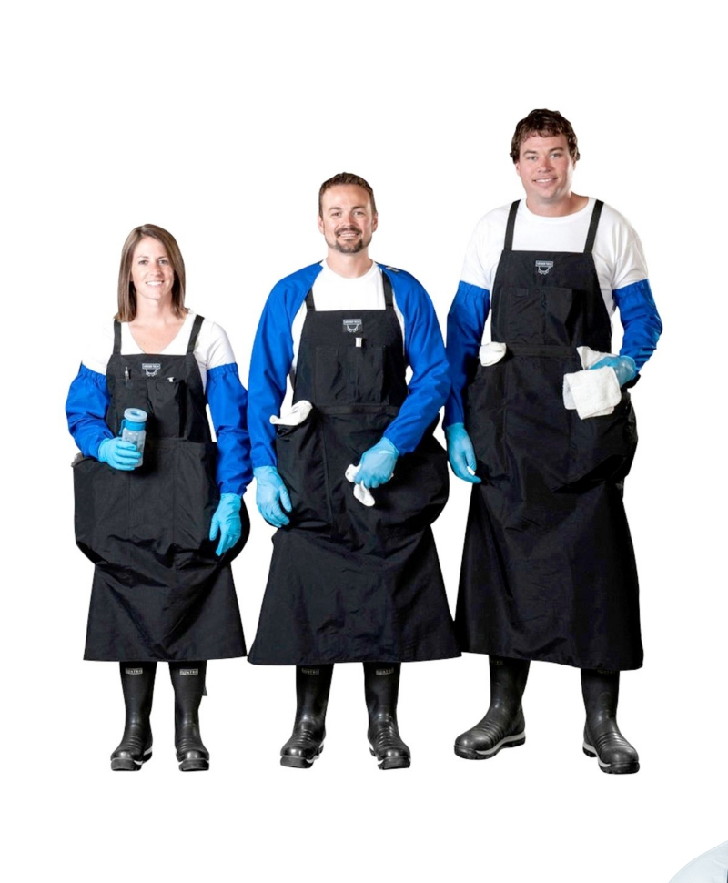 Sortul de protectie pentru mulgatori pastreaza hainele uscate in timpul mulsului si dispune de doua buzunare mari in care incap aproximativ 20-25 de lavete.