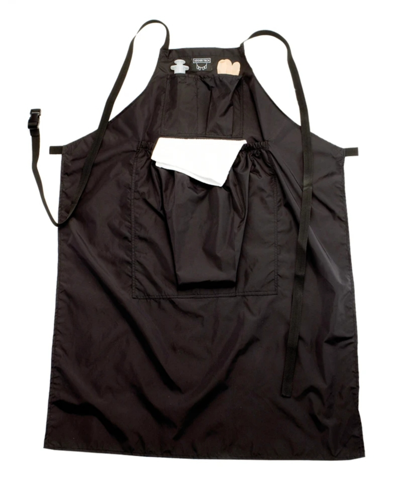 Sortul de protectie pentru mulgatori dispune de un buzunar central mare pentru prosoape, cu elastic in partea de sus, in care intra aproximativ 30 de lavete pentru igiena ugerului.