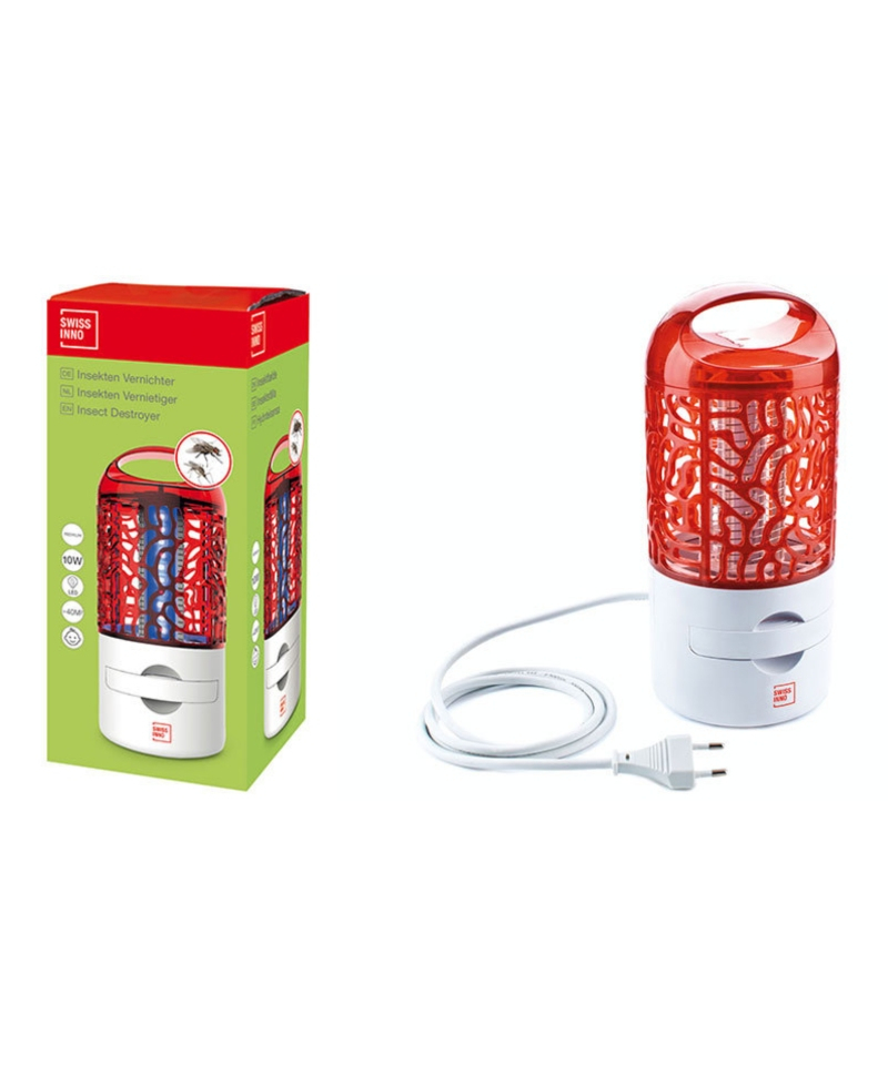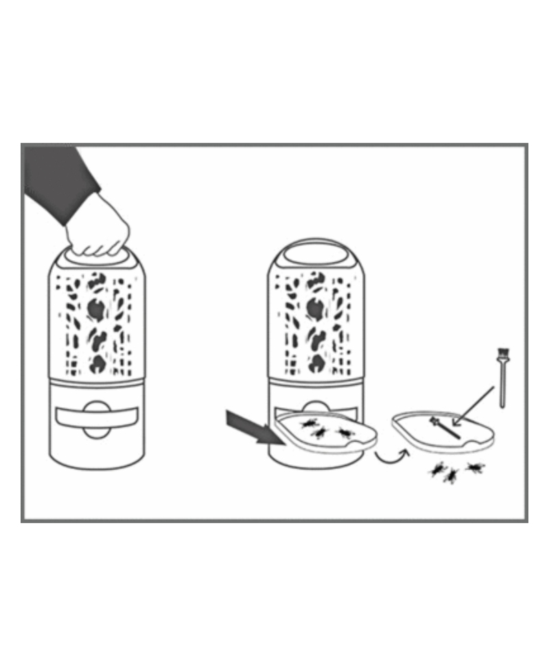 Becul LED al aparatului Insect Destroyer emite o lumina ultravioleta care atrage insectele zburatoare, cum sunt tantarii si mustele. Odata moarte, acestea cad in tava de la baza aparatului, care este detasabila si este usor de golit si de curatat. Atat grilajul electric, cat si lumina ultravioleta sunt inofensive pentru oameni si pentru animalele de companie.