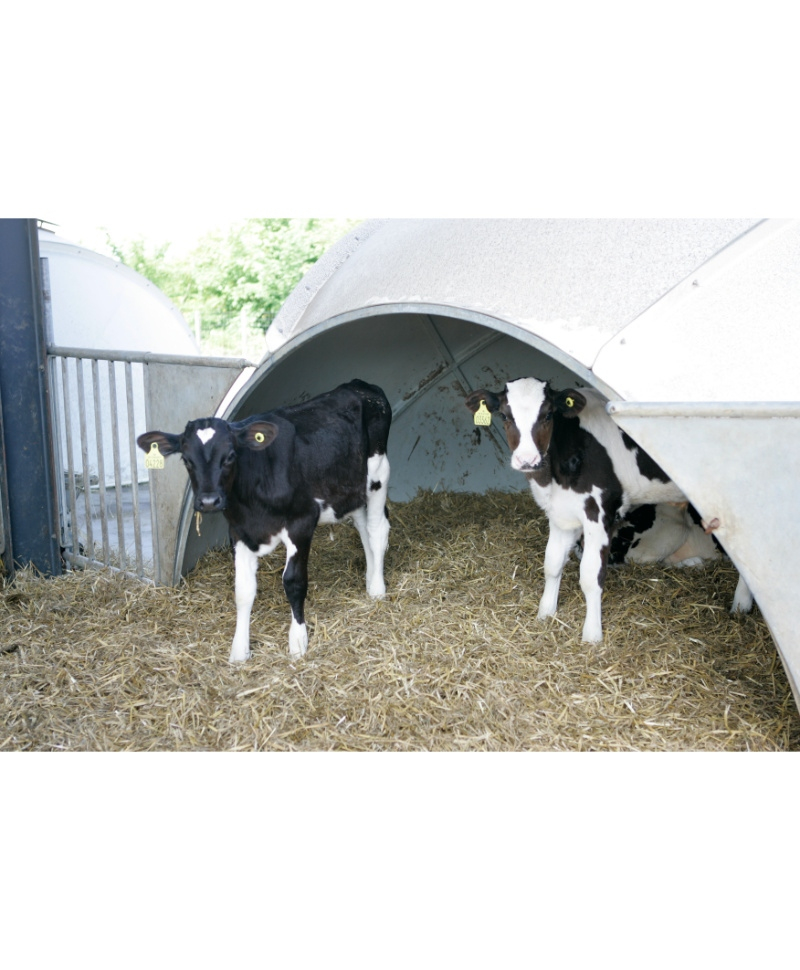 Boxa de tip iglu, impreuna cu Veranda Igloo, asigura viteilor un adapost ideal cu aer proaspat la discretie.
