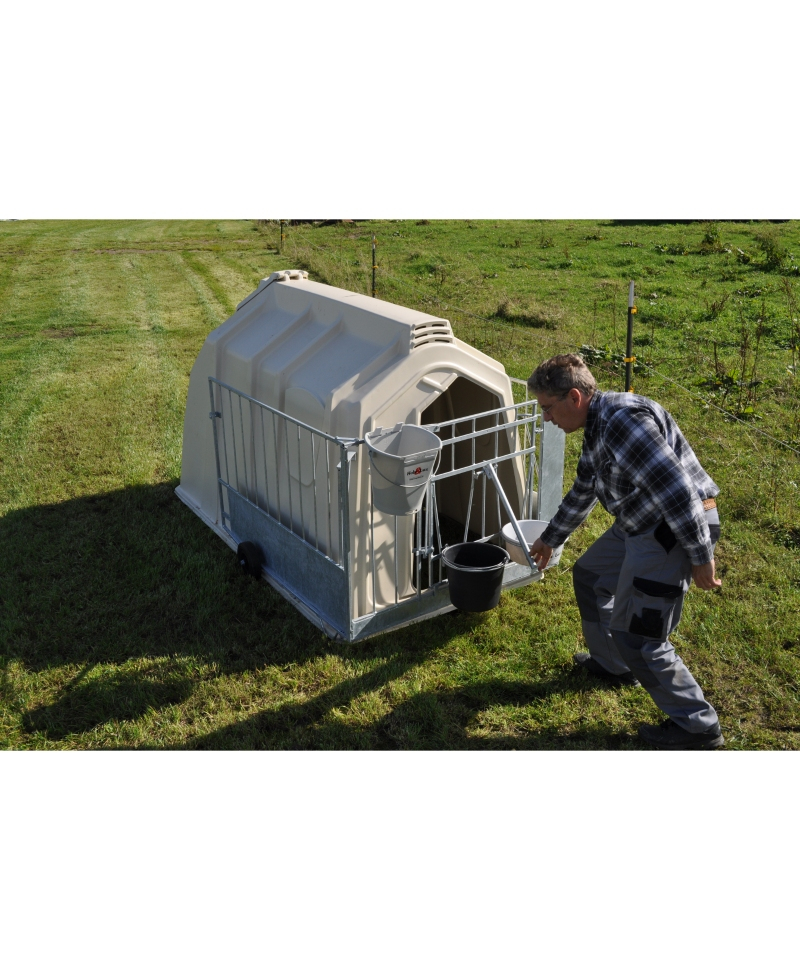 Cuseta individuala cu o suprafata de cca. 2,5 m², cu deschidere ajustabila in partea din spate pentru imprastierea paielor de asternut, realizata din polietilena de densitate mare, extrem de durabila si rezistenta la socuri, cu protectie UV 100%. Impreuna cu gardul metalic FlexyFence ofera vitelului un adapost ideal in aer liber de aproximativ 4 m².