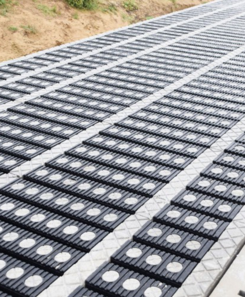 Gratar conceput pentru confort sporit pentru vaci si pentru ongloane mai sanatoase comparativ cu gratarele clasice. Este realizat din beton si cauciuc si asigura o scurgere buna.