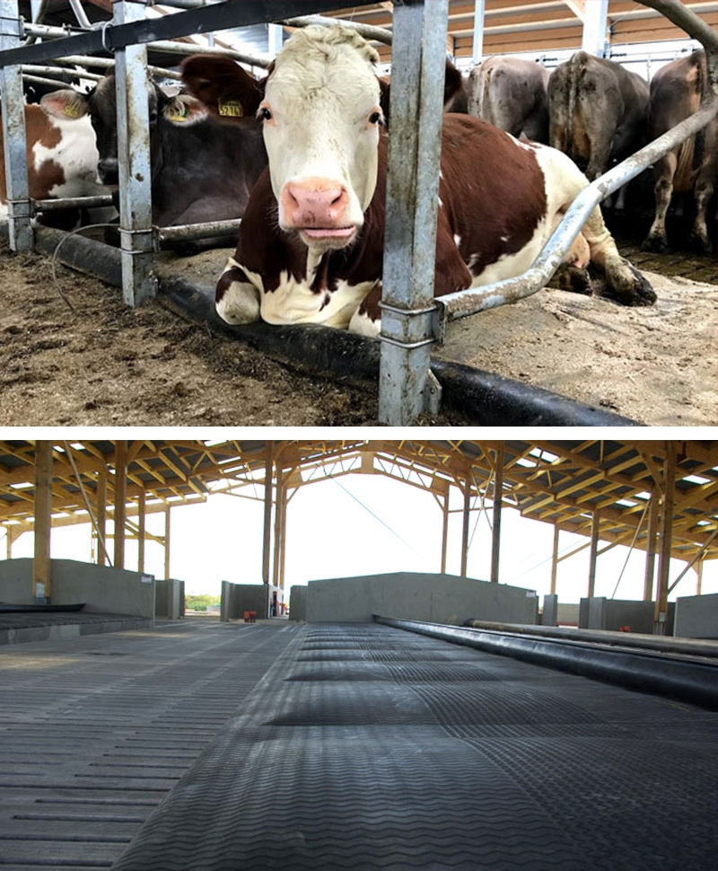 - Un pat de apa care urmareste morfologia vacii pentru o circulatie optima a sangelui, schimbul termal intre vaca si apa urmareste reducerea stresului provocat de caldura;