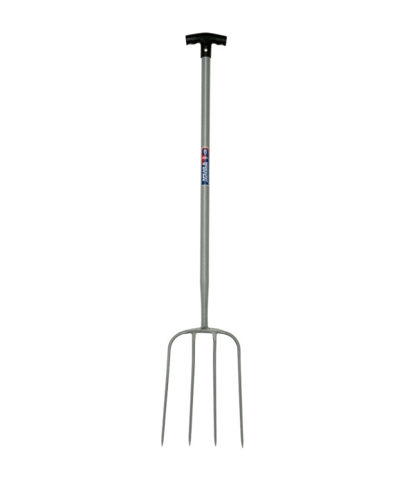 Furca compost cu 4 coarne otel carbon, coada tubulara metalica, maner T plastic, Spear & Jackson Neverbend Professional