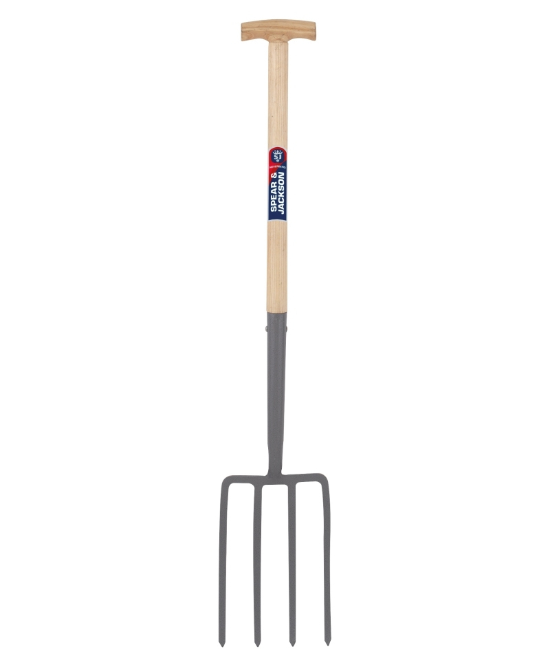 Furca profesionala Spear & Jackson Neverbend cu 4 coarne din otel carbon si coada din lemn rezistenta la intemperii este ideala pentru saparea solului.