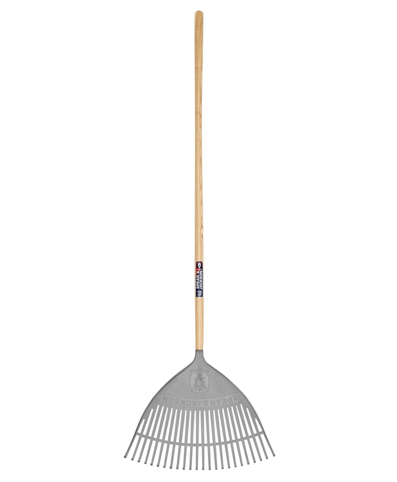 Grebla de tip evantai Spear & Jackson Neverbend cu dinti din plastic si coada din lemn este ideala pentru gospodarie, ingrijirea gazonului sau curatarea spatiilor amenajate.