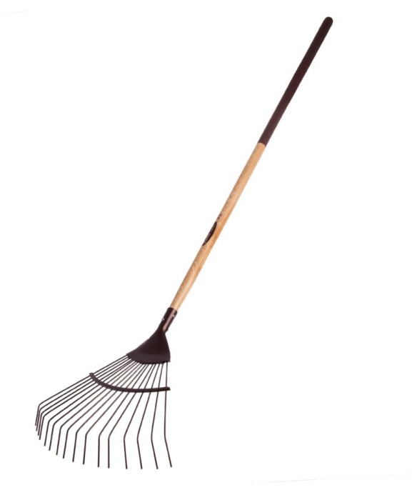 Grebla de tip evantai Spear & Jackson Traditional cu dinti din otel carbon si coada din lemn este ideala pentru curatarea gazonului si a spatiilor amenajate.