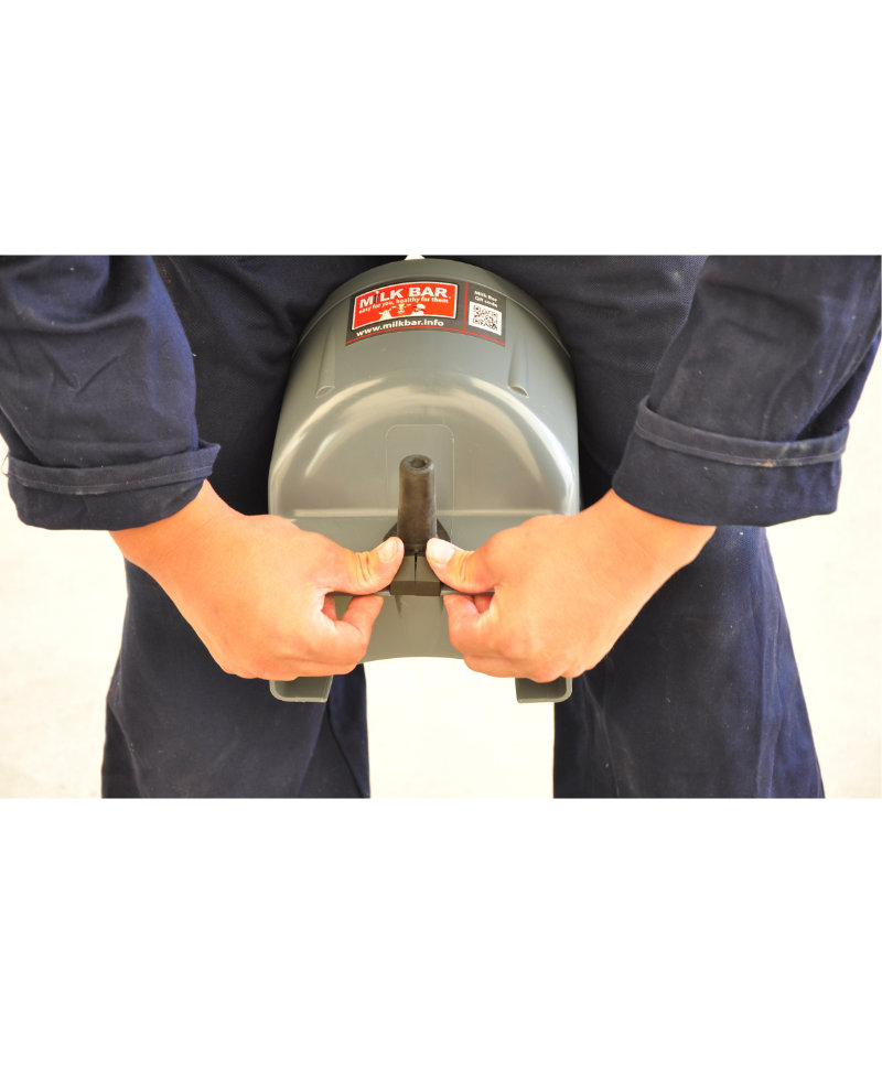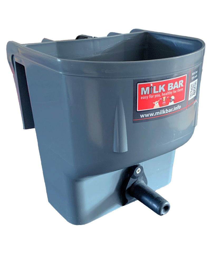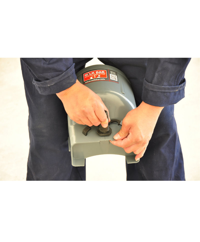 Galeata cu tetina pentru alaptarea viteilor, Milk Bar, 4l cu sistem fixare tetina, suport de prindere si carlig de blocare este special conceputa pentru alaptarea sanatoasa a viteilor.