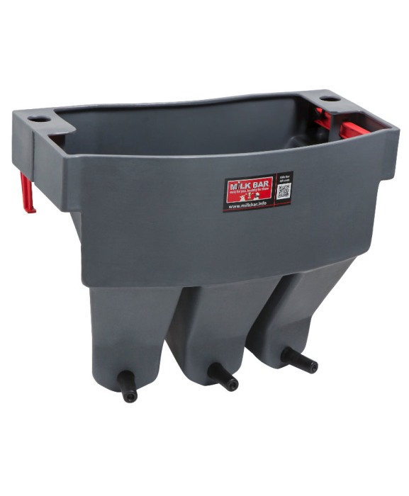 Hranitoarea compartimentata Milk Bar cu 3 tetine este ideala pentru fermele in care viteii sunt crescuti cate trei in boxa inca din primele zile de viata, ajutand la monitorizarea individuala a cantitatilor alaptate la fiecare masa.