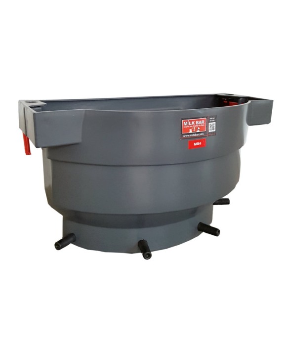 Hranitoarea comuna cu 4 tetine Milk Bar de 36 de litri, are spatiile dintre tetine mai distantate, pentru a permite alaptarea viteilor de dimensiuni mai mari precum viteii de carne sau bivolii.