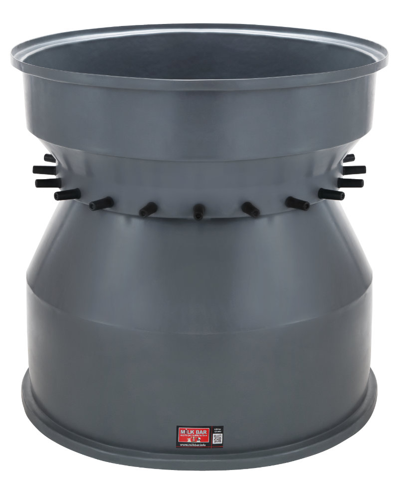 Hranitoare comuna vitei cu 20 de tetine cu orificiu special Milk Bar, are o capacitate de 120l, baza solida, amplasarea pe sol, destinata pentru grupe mai mari de vitei.