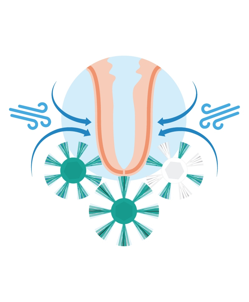 Peria din partea de jos este mai mare, putand astfel sa curete mameloane de diferite dimensiuni, inclusiv mameloanele mici ale junincilor. Dozarea corecta a solutiei de dezinfectie mentine mameloanele intr-o stare buna, reducand numarul de celule somatice si incidentele de mamita.