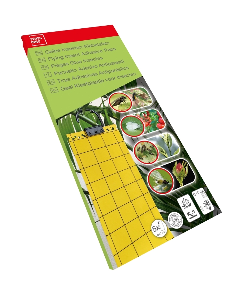 Continut pachet: 5 x placi adezive galbene pentru capturarea insectelor zburatoare Swissinno Yellow Adhesive Boards