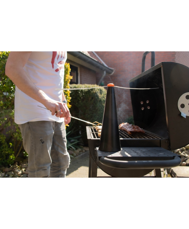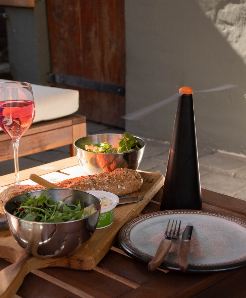 Dispozitivul tine mustele departe de mancare si este ideal pentru camping, picnic, gratar, terase, restaurante si magazine. Este eficient si impotriva viespilor.