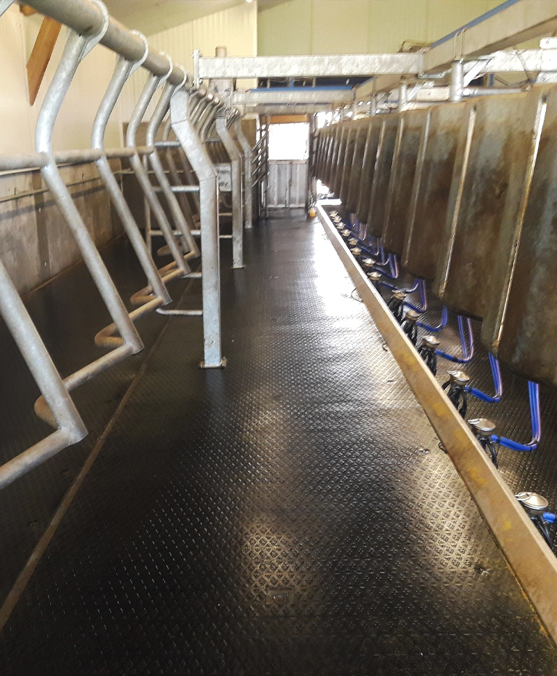 • Amplasat in sala de muls, covorul de cauciuc ajuta la detectarea cazurilor de mastita in timpul mulsului primelor jeturi;