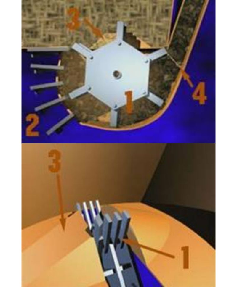 2. PLACILE DE FORFECARE: Placile de forfecare ajustabile separat ofera un control simplu si eficient dimensiunilor de macinare, fara a fi necesara utilizarea de site.