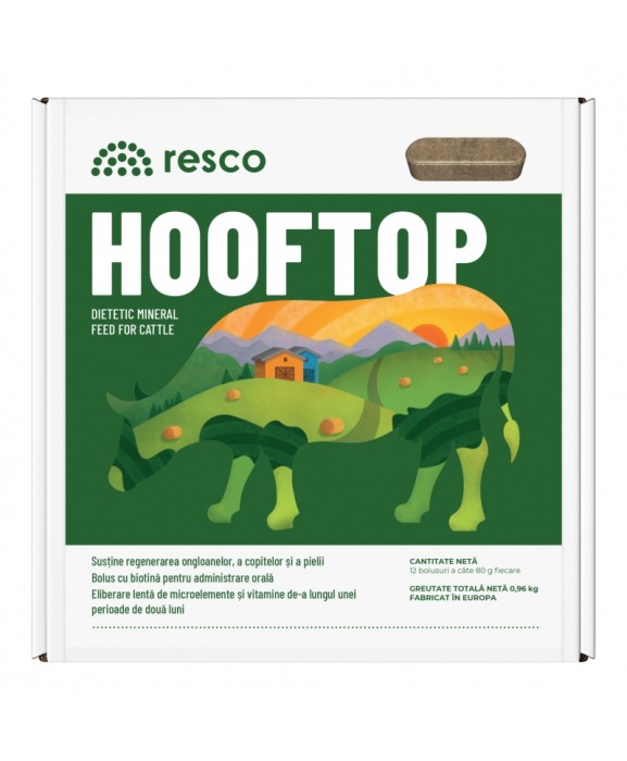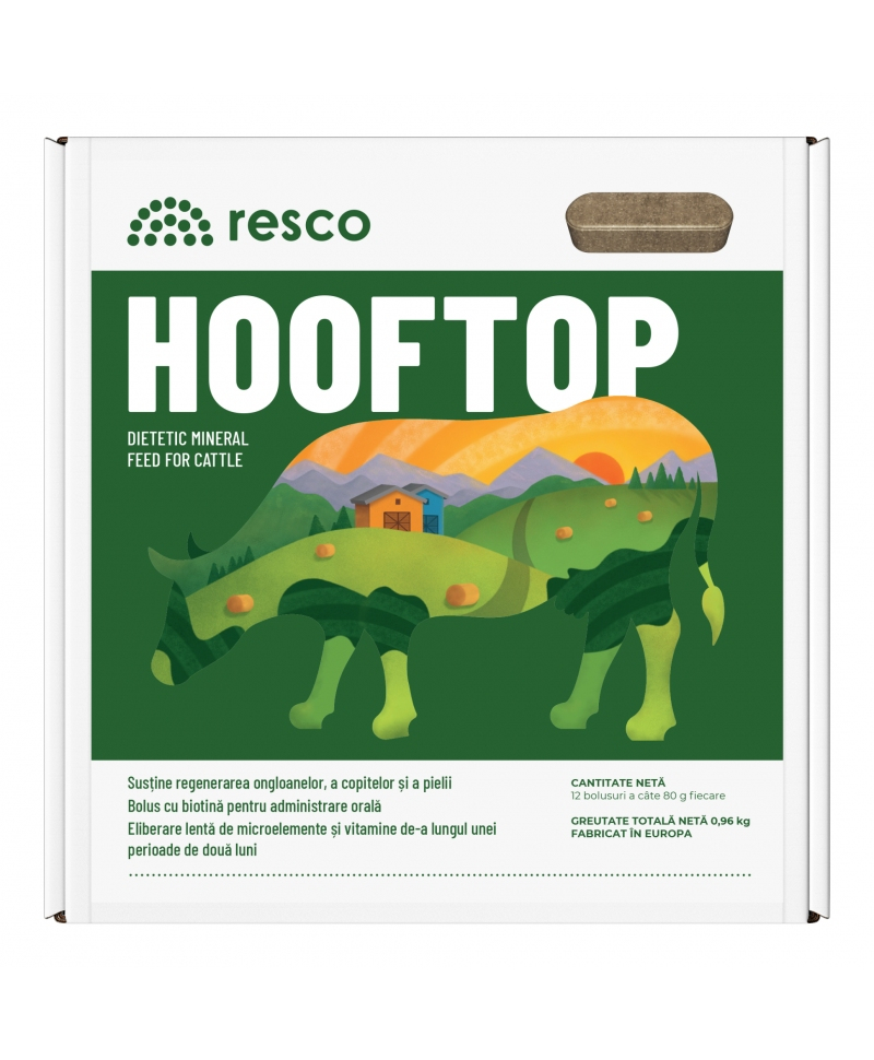 Bolusul cu biotina Hooftop de la Resco este un supliment pentru bovine, cu eliberare lenta, conceput pentru a creste rezistenta ongloanelor si pentru a preveni diverse probleme ale ongloanelor.