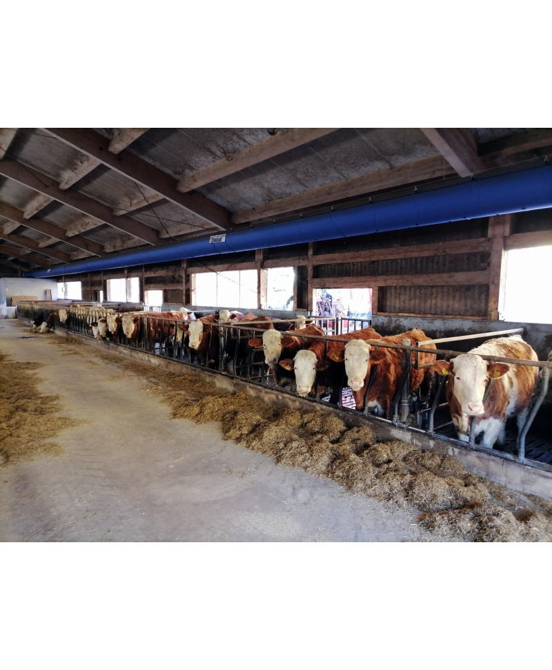 Schimbul de aer reduce in mod real efectele negative ale mediului de slaba calitate si stresul exercitat de caldura asupra animalelor. TUBE-VENT are o rata mare de schimb de aer in grajd. Poate fi instalat deasupra boxelor cu mai multe animale si a cusetelor individuale, deasupra aleilor de furajare, in sala de asteptare si in sala de muls. Marele avantaj este ca le dam animalelor aer proaspat direct in orice loc in care sistemele conventionale de ventilatie nu pot sa ajunga. Datorita echipamentului de control al ventilatiei, TUBE-VENT poate fi folosit pe tot parcursul anului, in special in lunile de vara, cand reduce stresul cauzat de caldura torida si impactul negativ al acestuia asupra productiei.